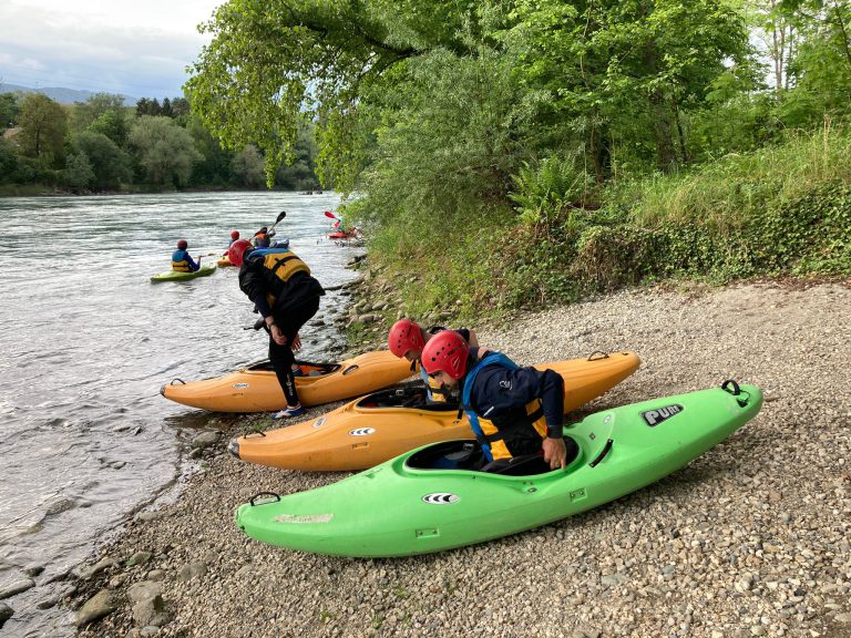 L’apprentissage de l’esquimautage (technique qui consiste à redresser un kayak chaviré sans quitter son bateau) est un gage de progression. Il s’agit d’apprendre à retourner son bateau quand celui-ci a chaviré, sans en sortir, avec uniquement un appui sur sa pagaie et grâce à l’étanchéité de sa jupe. Nous l’exerçons en piscine pendant l’hiver.