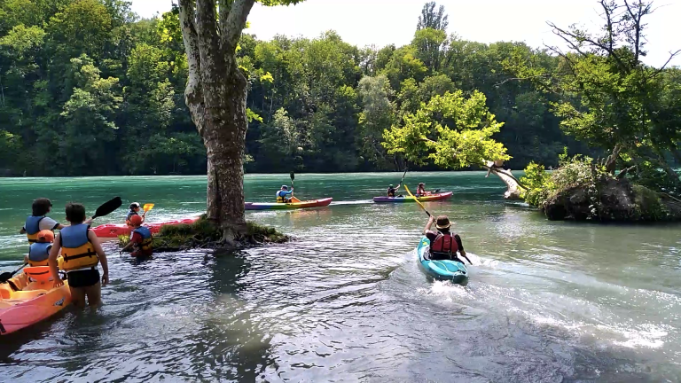Lors de nos stages d’été en collaboration avec la Ville de Genève et Passeport-Vacances, initie-toi au kayak autour de la Jonction.